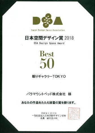 一般社団法人日本空間デザイン協会が2018年11月に主催した「DSA日本空間デザイン賞」は、1966年に創立された世界最大規模の空間環境系のデザイン賞で、優れた作品を顕彰する目的で毎年開催されています。このたび当社ショールームが、応募総数771作品の中からエキシビション、プロモーション空間部門で評価され、「Best50」に選出されました。