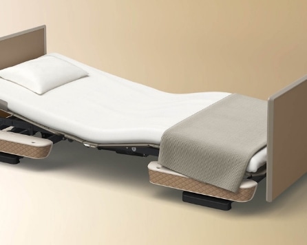 楽匠シリーズ、レント、クオラONE- 要介護度の状態や変化に合わせて、日常動作を支援できる様々な機能や付属品がある介護用ベッド。利用者様にも介護する方にも確かな力になります。