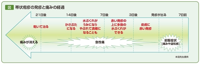 「皮膚症状は大体10〜20日で治ります。しかし、皮膚症状が治まった後も痛みの後遺症が長く続く人もいます。後遺症は皮膚症状が重い人に多い傾向なので、早期の発見・治療や、ワクチンによる予防がとても重要です」と本田先生は話します。