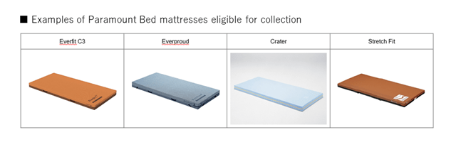 The partners also intend to work on creating a scheme for collecting used mattresses that have been reused as part of rental services covered under the nursing care insurance system. Aims are to achieve this by tapping into the wide area certification system*2 under which Paramount Bed has been certified.