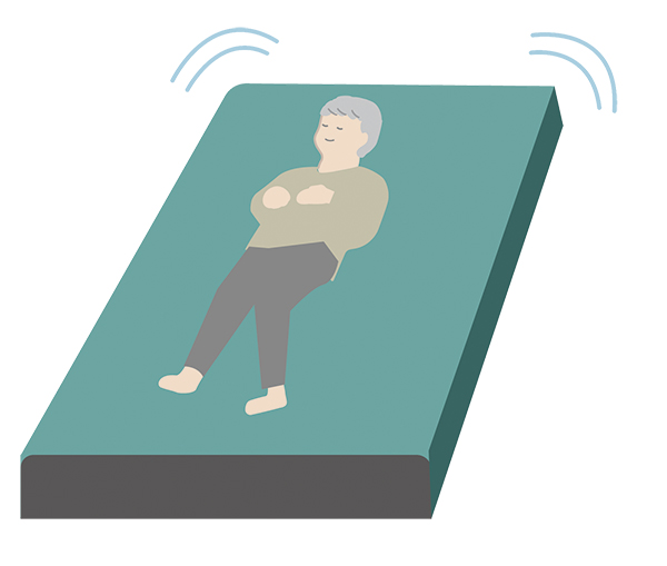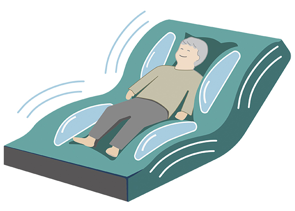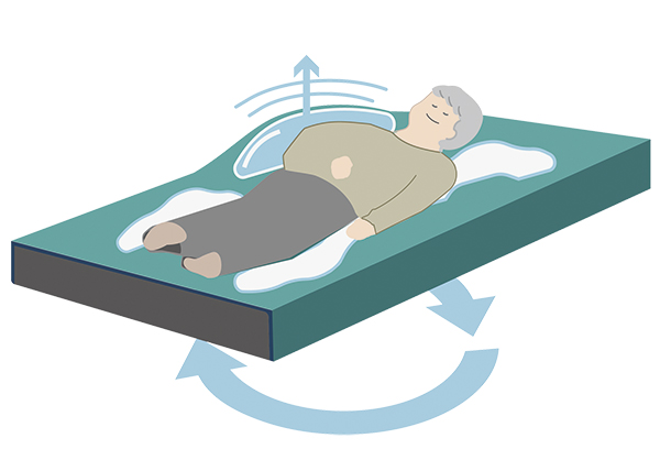 When the back angle of the bed is more than about 30°, the four small flow cells inflate simultaneously to support the posture when the back is raised.