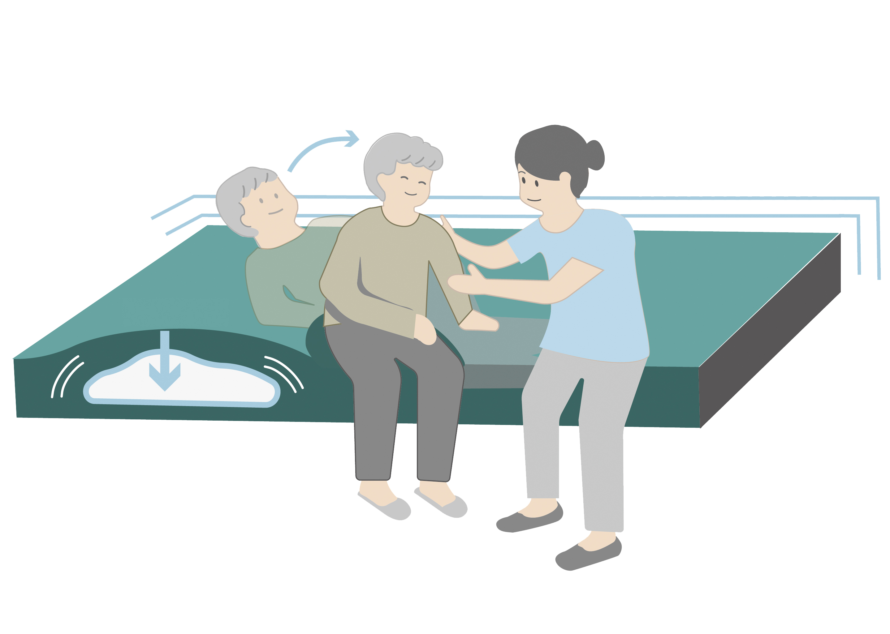 The system detects when the user gets up, turns to the edge of the mattress, or sits on the edge, and automatically increases the internal pressure of the entire mattress to make it firm.
