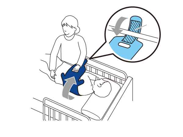 The Penguin Support is a positioning device that is used to change the position of patients to lateral recumbent and adjust their sleeping position. By attaching the Penguin Support to the bed's side-rail or another stationary object, patients can be kept in the lateral recumbent position temporarily. This enables caregivers to complete tasks such as changing diapers and cleaning of the patient easily and safely.