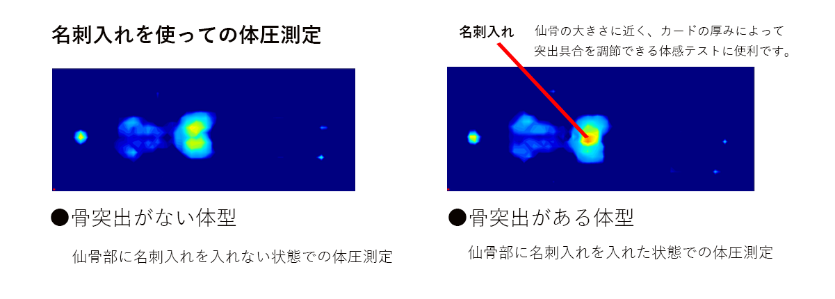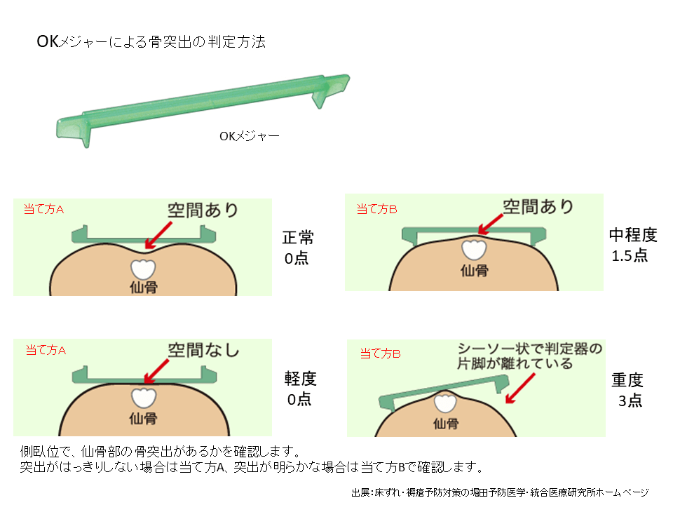 骨突出の危険度の判定には、私が開発した簡易骨突出判定スケールによる測定や、名刺入れを骨突出部に入れた体感テストが、適正な判定に結びつくかと思います。
