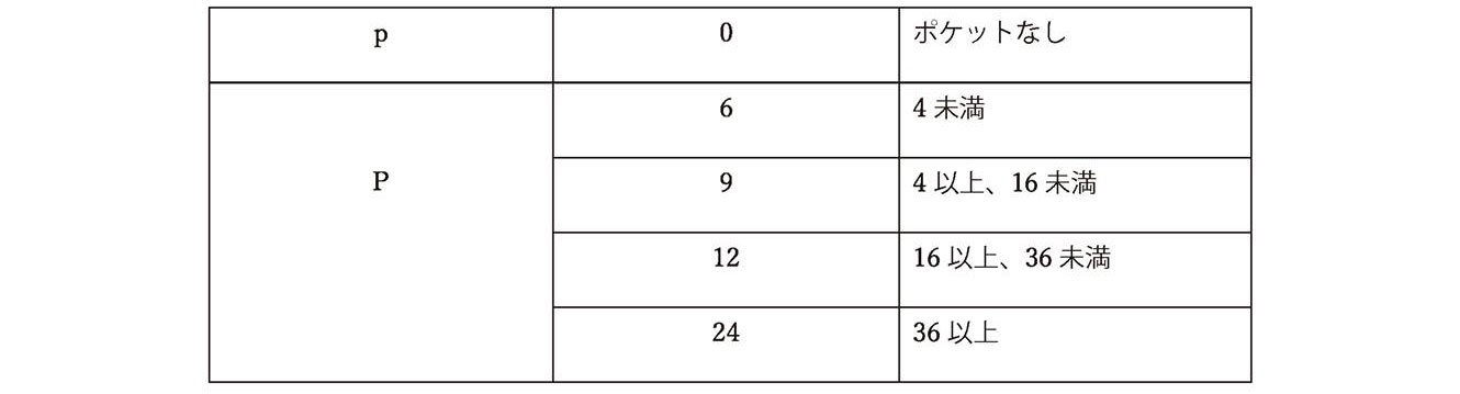 この6つの分類法のほか、ポケット(Pocket)という分類があります。これは、ポケットの存在があるかどうかでの判定で、もし存在する場合は、DESIGNの後に「-P」と記述します。