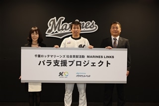 当社は、プロ野球チーム「千葉ロッテマリーンズ」を運営する株式会社千葉ロッテマリーンズと社会貢献プロジェクト「MARINES LINKS」の活動の一環である「パラ支援プロジェクト」に関するスポンサーシップを締結しました。「パラ支援プロジェクト」とは、千葉ロッテマリーンズが千葉県内の特別支援学校へ訪問し、「野球」や「ダンス」に特化したコンテンツを提供、児童生徒に体を動かす楽しみや喜びを味わってもらう取り組みです。本プロジェクトは、2023年4月から2025年までの3年間で県内37校の特別支援学校に実施予定です。