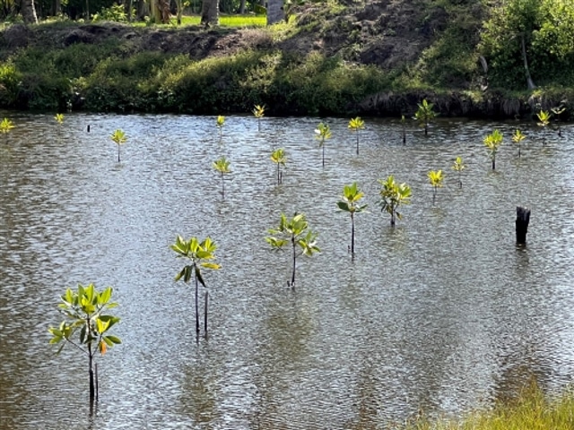 この度の規模拡大により、同マングローブ林は合計30ヘクタール・70,700本規模となる見込みで、二酸化炭素(CO2)吸収貯蓄量は最大約3.0万トン相当を見込んでいます。今後も同ポイントの蓄積に応じて、同地にて継続的に植林活動を行うことで、地球温暖化対策や自然環境の回復保全、地域住民の生活向上等への貢献を目指してまいります。現在、植林活動は順調に進み、前回植えたマングローブには成長して多くの葉がついています。
