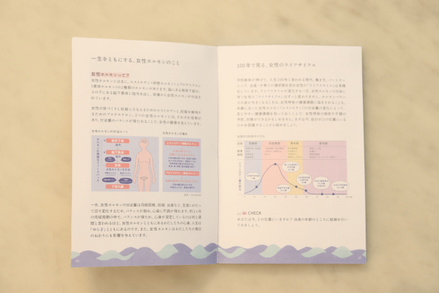 ヘルスダイアリーの読み物部分(抜粋)。波のデザインのスリーブケース。