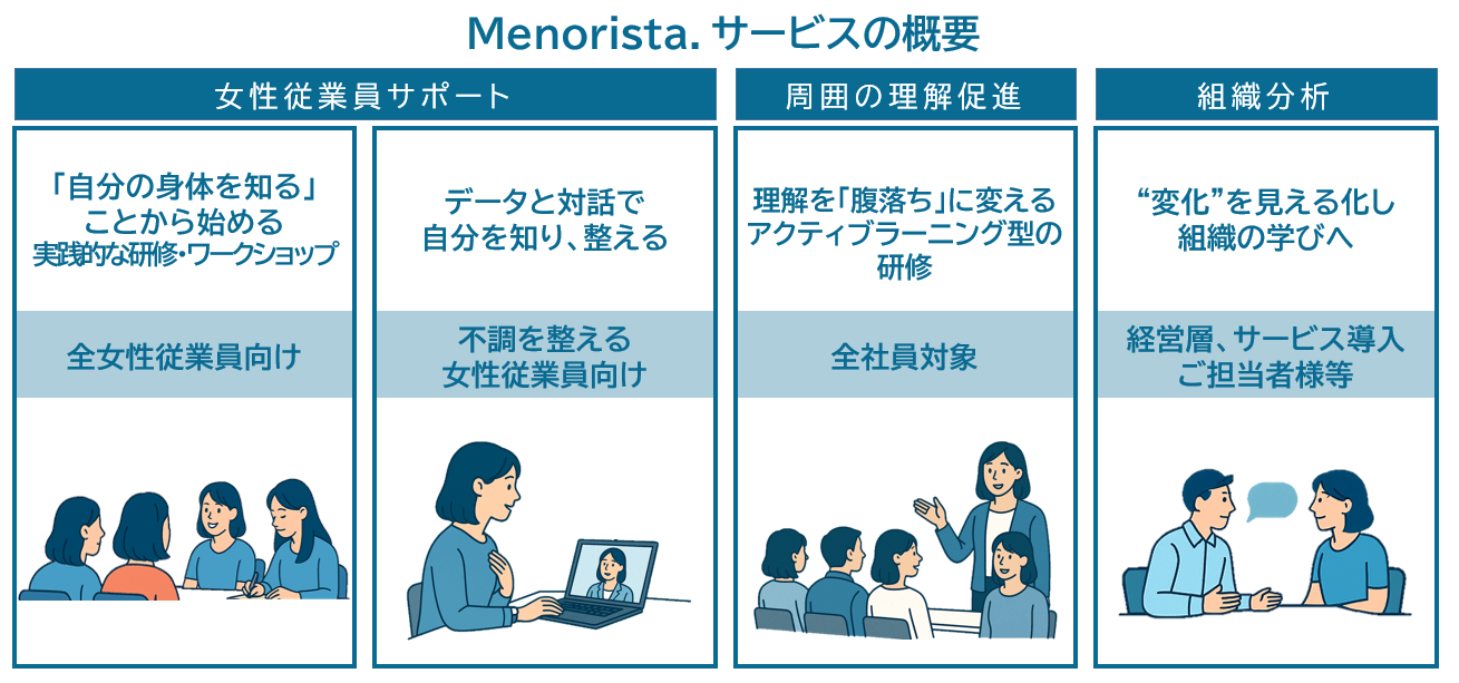 当社は2023年より、睡眠データをもとに女性の健康をサポートする「sleep×femtech」プロジェクトを推進しています。企業向けには、更年期世代の女性社員と職場を支援するサービス「Menorista.(メノリスタ)」を、陽と人と共同で開発し、これまでに複数の企業で約100名に提供してまいりました。