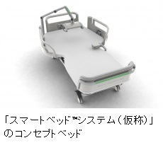 当社は、入院患者や在宅療養者などがベッド上に寝ている状態のまま、脈拍数や呼吸数などの生体情報等を非装着で測定し一元管理するベッドシステム「スマートベッド™システム(仮称)」と、その一部機能を搭載したコンセプトベッドを開発しました。このシステムでは測定した情報の変化をリアルタイムで自動的に分析、容体を把握し異常のある場合は携帯端末などに通知するほか、電子カルテや遠隔の医療機関などと連携し、関係者による情報の共有・活用を可能にします。生体情報を測定することによるさまざまな負担を軽減するほか、在宅医療の環境整備に貢献するなど、超高齢社会における課題である看護・介護職の人員不足や社会保障費の増大の解消を目指します。