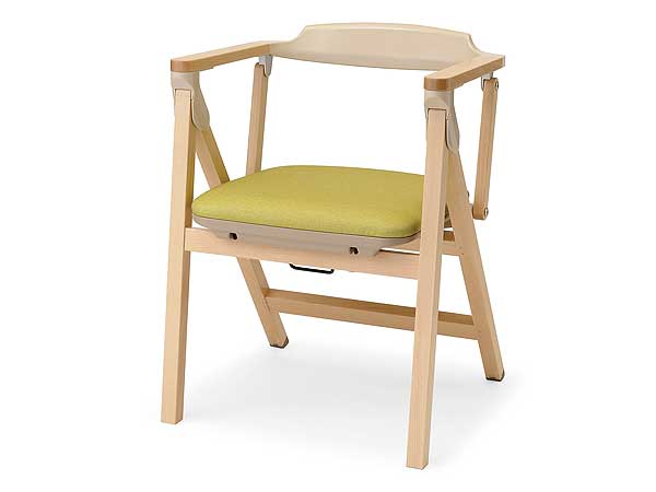 ベッドサイドでの利用に適したコンパクトな折りたたみチェアです。