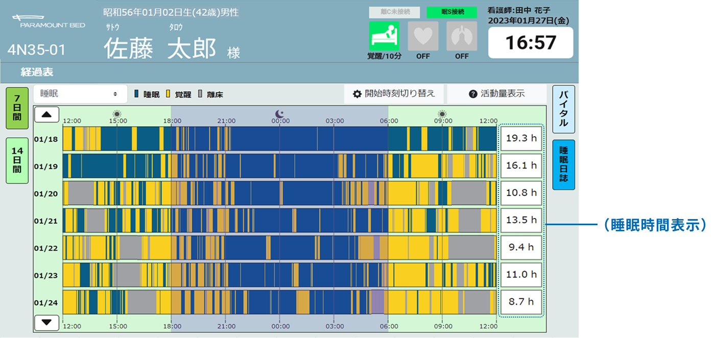 ・表示されている24時間ごとの合計睡眠時間を表示します(睡眠時間表示)。