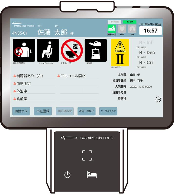 端末に表示します。また、患者様の状態変化を適宜お知らせすることも可能です。