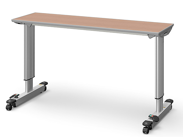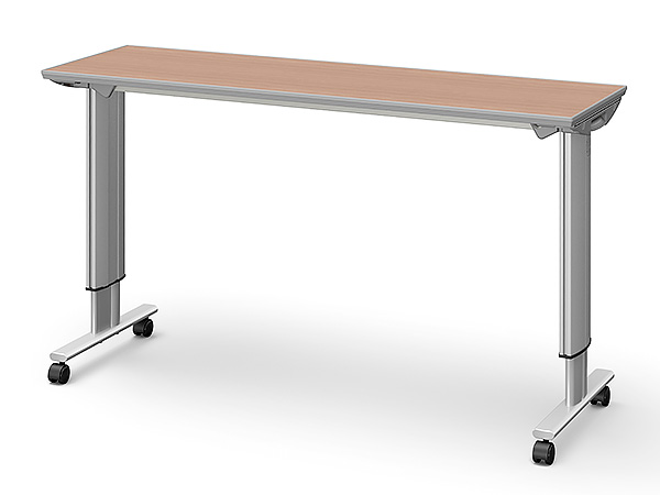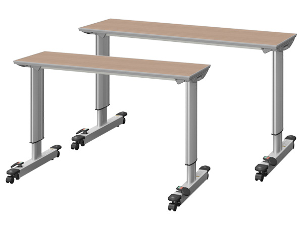 両脚タイプのため安定しやすく、天板が広いためさまざまな用途に対応します。移動ロック付きキャスターと移動ロックなしキャスターの2種類を用意しています。