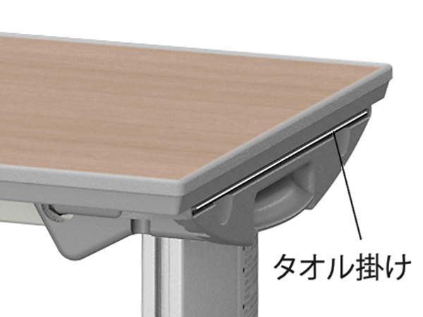 本体の左右両側にタオル掛けを設けています。使用しないときには本体に格納できます。