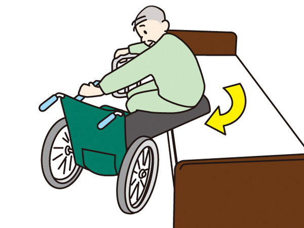移乗先と橋渡しになるように設置して、座ったままお尻を滑らせて移乗します。フレキシベルト ハグ(別売)などを併用すると介助する方が身体を支えやすく、より安全に移乗介助がおこなえます。