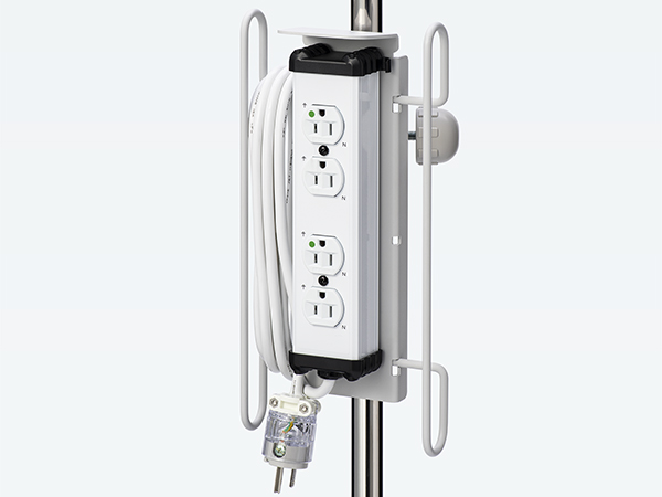 支柱に取り付けることで、マグネット式の電源タップホルダーを取り付けて一体的に利用できます。使用しないときには電源コードを掛けられるため、コードの整理や移動の際に便利です。