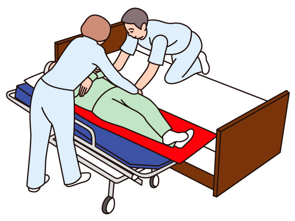 身体の下に敷いて簡単にスライドさせることができ、ベッドからストレッチャーなどへの臥位移乗が楽に行えます。内側のボードで多少の段差がある移乗でも使用できます。