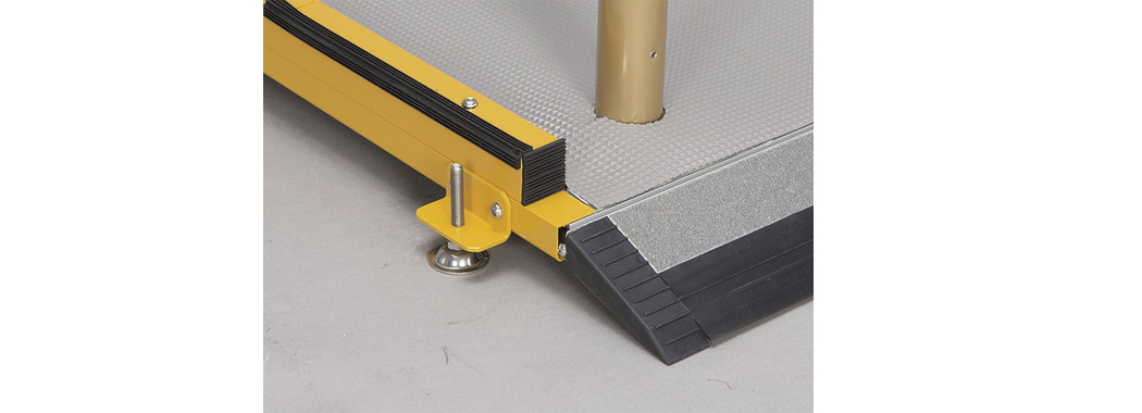 ベースプレートのアプローチ側にはスロープが付いています。また歩行時の滑りにくさに配慮した保護マットが付属します。