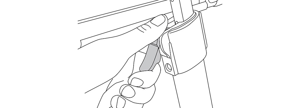 座面の折りたたみ用持ち手を引き上げると簡単に折りたため、しっかりとロックされます(付属の収納バスケットを付けたままで折りたためます)。折り畳んだ状態が保持しやすく、折りたたんだ状態で自立できます。