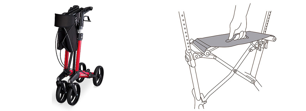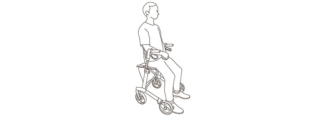 休憩に便利な座面付きです。歩行するときには足元が確認できるようにメッシュシートを使用しています。