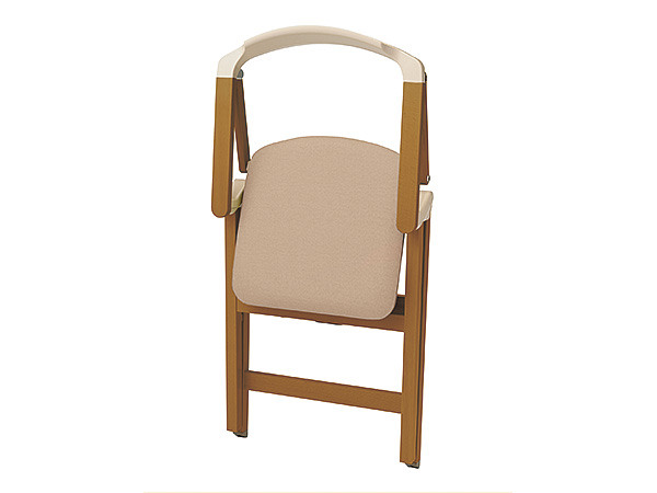 ベッドまわりのスペースを有効に使えるコンパクトな設計です。木製折りたたみチェアの場合は座面の裏に、アルミ製折りたたみチェアの場合は背に、手掛を設けているので持ち運びも容易です。アルミ製折りたたみチェアのフレームは軽量で、さらに持ち運びやすくなっています。